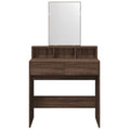 The dressing table is a great addition to your bedroom decor while keeping your cosmetics close at hand! Stable and durable material: Engineered wood is a durable and stable material with a smooth surface that is resistant to moisture, warping, and splitting, making it a reliable choice for a variety of projects.Ample storage space: The makeup table with 2 drawers and 3 compartments offers ample storage space for keeping your various daily essentials well organised and within easy reach.Utility mirror: A beautiful mirror provides the view for makeup application and adds an elegant touch to the vanity desk. Warning:To prevent it from tipping over, this product must be used with the provided wall attachment device.