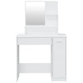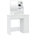 This dressing table will give your bedroom a timeless, refined look. The makeup table with mirror is a great addition to your bedroom decor while keeping your cosmetics close at hand! Premium material: The engineered wood is of exceptional quality with smooth surface and also features strength, stability and resistance to moisture. Made of engineered wood, this vanity table is easy to clean.Ample storage: The drawer, compartments and open shelves of the makeup vanity desk offer places for makeup items and keep everything in its place.Utility mirror: A beautiful mirror provides the view for makeup application and adds an elegant touch to the vanity desk.Practical door: Keep your space clutter-free by hiding small essentials behind the door of this jewellery table. Warning:In order to prevent overturning, this product must be used with the wall attachment device provided. Note:Each product comes with an assembly manual in the box for easy assembly.
