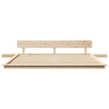 This floor bed frame features an integrated design that combines functionality with elegance, seamlessly blending a headboard and bedside tables for a lovely look. Made from solid pine wood with a natural finish, it gives off a minimalist vibe that fits in with any decor, making your nights super comfy and peaceful. Integrated Headboard and Tables: The clever design includes a headboard and bedside tables, boosting both style and space efficiency. This means everything's within reach while you chill. Independent Bedside Tables: The two bedside tables are separate, giving you the freedom to set up your bedroom just how you want. Easily move them around to suit your layout. Sturdy Pine Wood Construction: Made from solid pine wood, this bed frame promises durability and stability, supporting both you and your mattress without compromising quality. It's built to last, so you can rest easy. Ample Storage Space: With built-in storage features, the bed frame allows you to make the most of your bedroom space, giving you room for your things. This design is all about keeping your space tidy and organized. Easy Maintenance: Keeping it clean is a doddle, just give it a wipe with a soft cloth. This keeps your space looking fresh with minimal fuss.