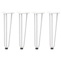 These hairpin table legs combine form and function. It's an ideal choice for customising your coffee table. Durable material: This hairpin table leg is made of solid powder-coated steel, making it sturdy and long-lasting enough to support a heavy tabletop.Practical design: This hairpin table leg includes adjustable foot levellers, ensuring stability even on uneven floors and minimising floor scratches. Furthermore, the bracket incorporates pre-drilled holes and delivery-included screws for attaching the leg to the tabletop (not included), simplifying the assembly process.Modern aesthetics: The hairpin table leg offers a sleek and contemporary look. Its clean lines and geometric design enhance the overall appearance of the furniture. Good to know:The delivery only contains table legs, the tabletop is not included.