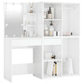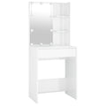 Truly simple, yet functional LED dressing table with 2 cabinets, perfectly matches different kinds of interiors. Durable material: The LED dressing table with cabinets is made of engineered wood. The engineered wood is of exceptional quality with smooth surface and also features strength, stability and resistance to moisture.LED light: The cosmetic table with cabinets has LED bulbs with USB, which are easy to switch modes from warm to cold white. The featured LED bulbs around mirror illuminate your beauty as well.Ample storage space: The dressing table with 2 storage cabinets gives spacious storage with compartments, perfect for organising your makeup, accessories, bags and beauty essentials. WARNING:In order to prevent overturning, this product must be used with the wall attachment device provided. Note:Each product comes with an assembly manual in the box for easy assembly.