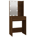 The trendy LED dressing table with cabinet gives your bedroom a timeless, refined look. It is a perfect addition to your bedroom decor and also keeps your cosmetics close at hand! Stable material: The engineered wood is of exceptional quality with smooth surface and also features strength, stability and resistance to moisture.Utility mirror: The dressing table with a mirror is perfect for your daily beauty routine. The mirror allows you to take care of your facial skin and wear your makeup too!LED light: The dressing table with storage also has LED bulbs with USB, which are easy to switch modes from warm to cold white. The featured LED bulbs around the mirror illuminate your beauty as well.Ample storage space: The dressing table with lights provides ample space for easy access to your make-up, jewellery and everyday essentials.Wide applications: This dressing table set is suitable for various scenes, such as your bedroom, cloakroom and any other room you want to place it in. WARNING:In order to prevent overturning, this product must be used with the wall attachment device provided. Note:Each product comes with an assembly manual in the box for easy assembly.