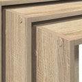 Transform your living space with stylish and practical nesting tables, designed to adapt to your needs and enhance the overall aesthetic of your home. Stable and durable material: Engineered wood is a durable and stable material with a smooth surface that is resistant to moisture, warping, and splitting, making it a reliable choice for a variety of projects.Nesting design: The versatile nesting tables are designed to adapt to your living space. Use them individually as side tables, stack them at varying angles to create a unique end table, or combine them neatly to save space. They seamlessly blend functionality with style, making them a perfect addition to modern interior arrangements.Strong tabletop: The sturdy tabletop of the nesting side table is ideal for resting your drinks or any other necessities you need close at hand.Contemporary appeal: The nesting tables feature a contemporary aesthetic that adapts to become a striking focal point in any living space, adding a touch of chic and functionality.Easy to maintain: Thanks to its smooth surface, the table is easy to clean with a damp cloth and requires less maintenance.