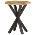 Bring a touch of industrial charm into your home decor with this wooden side table! This end table is made of solid reclaimed wood that has been sourced from joists, floors and support beams from old buildings being demolished, and can consist of different types of wood like pine, teak, beech, oak, cedar, mango wood, acacia, etc. This means the reclaimed wood retains the characteristics of these different types of wood. Reclaimed wood is already aged, weathered and dried, so it doesn't shrink or bend. This table is fully handmade and the beautiful wood grains make every piece unique and slightly different from each other. The powder-coated iron legs add to its sturdiness. Important note: The colours vary from piece to piece, making each piece unique. The delivery is random, ensuring the exclusivity and individuality of your product.