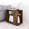Bring the luxury of elegant charm to your interior with this stylish side table! Ample storage space: The storage space makes this table easy to keep things organised.Wheels for moving easily: This coffee table is easy to move around with the equipped wheels.Easy-to-clean material: The engineered wood is of exceptional quality with smooth surface and also features strength, stability and resistance to moisture. Made of engineered wood, the end table is easy-to-clean.