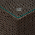 This side table makes a great addition to your indoor or outdoor space. This end table is made of weather-resistant poly rattan, metal frame and glass tabletop, making it hard-wearing and suitable for daily use. Thanks to the lightweight construction, it is easy to move around. Additionally, this accent table can serve as a sofa table, a tea table and a dining table etc. It is easy to clean with a damp cloth.