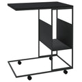 This C-shaped side table, with timeless and decorative design, is a practical and stylish addition to your current living space. Premium material: The engineered wood is of exceptional quality with smooth surface and also features strength, stability and resistance to moisture. Made of engineered wood, the top of the coffee table is easy to clean.Strong and sturdy structure: The iron frame of the sofa table ensures sturdiness and stability.User-friendly design: The C-shaped design and four wheels make it easy to place the tea table near the sofa, bed or any spot you prefer. What's more, there is a shelf for you to keep things within easy reach.