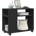 This side table is designed to be the focal point of your room with a trendy yet practical design.Stable and durable material: Engineered wood is a durable and stable material with a smooth surface that is resistant to moisture, warping, and splitting, making it a reliable choice for a variety of projects.Ample storage space: The side table with an open design has two shelves and offers ample storage space to keep your essentials well organised and within reach.Easy to move: This side table, with the included four swivel wheels, can be easily moved to the desired place. The two wheels are lockable, which keeps the cabinet in position and adds stability.Easy to maintain: Thanks to its smooth surface, the side table is easy to clean with a cloth and requires less maintenance.Wide applications: This side table has a timeless design and can be used in the living room, kitchen, or bedroom according to your needs.