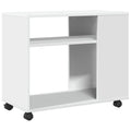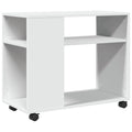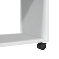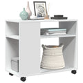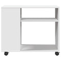 This side table is designed to be the focal point of your room with a trendy yet practical design.Stable and durable material: Engineered wood is a durable and stable material with a smooth surface that is resistant to moisture, warping, and splitting, making it a reliable choice for a variety of projects.Ample storage space: The side table with an open design has two shelves and offers ample storage space to keep your essentials well organised and within reach.Easy to move: This side table, with the included four swivel wheels, can be easily moved to the desired place. The two wheels are lockable, which keeps the cabinet in position and adds stability.Easy to maintain: Thanks to its smooth surface, the side table is easy to clean with a cloth and requires less maintenance.Wide applications: This side table has a timeless design and can be used in the living room, kitchen, or bedroom according to your needs.