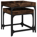 Give your living room a unique industrial makeover with these stylish side tables! Sturdy material: The engineered wood is of exceptional quality with smooth surface and also features strength, stability and resistance to moisture.Practical top: The coffee table, featuring a practical top, provides ample and organised storage for your everyday essentials.Stable frame: The steel frame of the table ensures sturdiness and stability.Adjustable legs: Thanks to the adjustable legs, the lamp table can stand on uneven floors without difficulty.Space-saving function: The frame of the taller end table is open on one side so the other sofa table can be easily slid underneath to save space. Note:Each product comes with an assembly manual in the box for easy assembly.