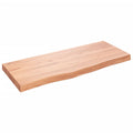 Give a new life to your table with this wooden table top. It is an excellent solution for freshening up your table at home or in a commercial setting. Solid oak wood: The tabletop is made of solid oak wood, which is a beautiful natural material. Oak wood has a medium brown colour and a dense grain, contributing to its unique look.Versatile applications: The replacement table top can be combined with different bases according to your needs.Treated surface: The replacement board has been varnished so it is ready for use as an additional finish is not required.Handmade with live edge: The DIY board is meticulously handcrafted, showcasing a live edge that adds to its natural charm. Every piece of shelf has its own unique character to display. The delivery is random, ensuring the exclusivity and individuality of your product. Good to know:As a natural product, wood may show knots and imperfections that we fill with black fillings to ensure a smooth appearance.