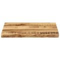 Give a new life to your table with this wooden table top. It is an excellent solution for freshening up your table at home or in a commercial setting. Solid mango wood: Solid mango wood is a strong, tropical hardwood that makes sturdy furniture. Its beautiful wood grains make every piece of furniture slightly different from the next.Versatile applications: The replacement table top can be combined with different bases according to your needs.Live edge design: The wooden furniture top has a rustic live edge. Due to that the knots, cracks, slightly curved shapes, and colour tones are part of the oak wood, and every piece of the shelf has its unique character to display.Easy-to-clean surface: The smooth tabletop is easy to clean with a damp cloth. Good to know:Each item is unique with variations in colours and grains. The delivery is random, ensuring the exclusivity and individuality of your product.