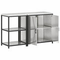 This Utility Storage Cabinet is the perfect answer for your kitchen needs, acting like the essential piece you need to sort and declutter your space. Its strong design with a modern style works well with both contemporary and classic looks. With a smooth, opaque finish and rectangular shape, this cabinet adds a polished touch to your kitchen, garage, or utility room. It's made to improve organization, giving you a dedicated spot for various household items and making it a handy addition to any home or workspace. Materials: Made mainly from stainless steel, this cabinet boasts strong steel parts. The powder-coated finish keeps it looking good for ages by resisting UV rays and maintaining its sleek look. The opaque steel material gives you a solid and reliable storage option that can handle everyday use in different places. Included Components: This storage cabinet comes with metal shelves that provide a sturdy base for storing heavy tools or items. Hinged doors with bar handles make it easy to get to your stuff, while the matte aluminium handles give a hint of elegance to the overall design. Every part is carefully chosen to ensure even weight distribution and easy use, making organization straightforward and intuitive. Features / Function / Design: Levelers are included so you can adjust the cabinet on uneven floors, keeping it stable wherever you are. The modern design features sleek lines and a smooth finish, making it fit well with various interior styles. It’s designed to adapt to specific organizational needs without losing its stylish appeal. Recommended Uses: Perfect for utility rooms, garages, and workshops, this cabinet gives you plenty of room for organizing tools, kitchen gear, or household supplies. Its adaptability makes it a great asset for both homes and businesses, helping create a more organized and efficient space. Care & Maintenance: To keep the cabinet looking sharp, avoid harsh chemicals or scrubs when cleaning. If it's outside, use a protective cover to prevent weather damage. Follow these tips to make it last longer and keep it looking good.