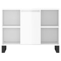 This bathroom cabinet is meant to be a great addition to your bathroom, giving it a tidy and striking appearance! Durable material: The engineered wood is of exceptional quality with smooth surface and also features strength, stability, and resistance to moisture.Ample storage space: The bathroom furniture has 1 compartment with door and 4 shelves, offering various storage options and extra space to store items in your bathroom.Flexible door installation: You can install the door either on the left or right side based on your own needs.Iron feet: The iron feet add an industrial style to your interior while ensuring the stability of the bathroom storage cabinet. Warning:To prevent it being overturned, this product must be used with the provided wall attachment device.