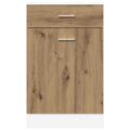 This drawer bottom cabinet optimises your kitchen space, providing ample storage space for your personal belongings! Durable material: The engineered wood is of exceptional quality with smooth surface and also features strength, stability and resistance to moisture. Made of engineered wood, the kitchen cabinet is easy to clean.Ample storage space: The cabinet has 1 drawer and 2 compartments, offering sufficient space to store bowls, plates, pots, and other kitchen appliances.Practical door: Keep your space clutter-free by hiding small essentials behind the door of the kitchen unit. Warning:To prevent it from tipping over, this product must be used with the provided wall attachment device.