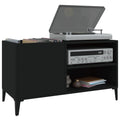 Store and show off your vinyl records with this practical and classic record cabinet. Durable material: The engineered wood is of exceptional quality with a smooth surface and features strength, stability and resistance to moisture.Ample storage space: The spacious record player cabinet offers ample storage space for LP records and keeps your music collection well-organised.Sturdy top: The sturdy top of the vinyl storage cabinet is ideal for placing your record player or other electronics.Multiple functions: This record storage cabinet can also be used as a side cabinet in the living room or a filing cabinet in the office and study.Metal legs: The metal feet add an industrial style to your interior while ensuring stability.
