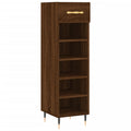 Keep your shoes organised and create a tidy environment with this elegant shoe cabinet! Durable material: The engineered wood is of exceptional quality with smooth surface and also features strength, stability and resistance to moisture.Ample storage space: This shoe cupboard has 1 drawer and 5 open compartments, providing ample storage space for keeping all types of shoes.Stable cabinet top: The top of this shoe stand is suitable for placing your favourite decorative items such as vases, potted plants, etc.Practical design: The iron feet add an industrial style to your interior while ensuring stability. The aluminium alloy drawer handle is stylish and durable Warning:To prevent it being overturned, this product must be used with the provided wall attachment device.