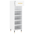 Keep your shoes organised and create a tidy environment with this elegant shoe cabinet! Durable material: The engineered wood is of exceptional quality with smooth surface and also features strength, stability and resistance to moisture.Ample storage space: This shoe cupboard has 1 drawer and 5 open compartments, providing ample storage space for keeping all types of shoes.Stable cabinet top: The top of this shoe stand is suitable for placing your favourite decorative items such as vases, potted plants, etc.Practical design: The iron feet add an industrial style to your interior while ensuring stability. The aluminium alloy drawer handle is stylish and durable Warning:To prevent it being overturned, this product must be used with the provided wall attachment device.