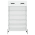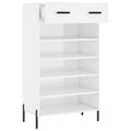 Keep your shoes organised and create a tidy environment with this elegant shoe cabinet! Durable material: The engineered wood is of exceptional quality with smooth surface and also features strength, stability and resistance to moisture.Ample storage space: This shoe cupboard has 1 drawer and 5 open compartments, providing ample storage space for all types of shoes.Stable cabinet top: The top of this shoe stand is suitable for placing your favourite decorative items such as vases, potted plants, etc.Practical design: The iron feet add an industrial style to your interior while ensuring stability. The zinc alloy drawer handles are stylish and durable Warning:To prevent it being overturned, this product must be used with the provided wall attachment device.