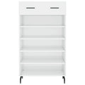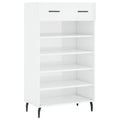 Keep your shoes organised and create a tidy environment with this elegant shoe cabinet! Durable material: The engineered wood is of exceptional quality with smooth surface and also features strength, stability and resistance to moisture.Ample storage space: This shoe cupboard has 1 drawer and 5 open compartments, providing ample storage space for all types of shoes.Stable cabinet top: The top of this shoe stand is suitable for placing your favourite decorative items such as vases, potted plants, etc.Practical design: The iron feet add an industrial style to your interior while ensuring stability. The aluminium drawer handles are stylish and durable. Warning:To prevent it being overturned, this product must be used with the provided wall attachment device.