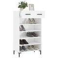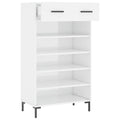 Keep your shoes organised and create a tidy environment with this elegant shoe cabinet! Durable material: The engineered wood is of exceptional quality with smooth surface and also features strength, stability and resistance to moisture.Ample storage space: This shoe cupboard has 1 drawer and 5 open compartments, providing ample storage space for all types of shoes.Stable cabinet top: The top of this shoe stand is suitable for placing your favourite decorative items such as vases, potted plants, etc.Practical design: The iron feet add an industrial style to your interior while ensuring stability. The square iron drawer handles are stylish and durable. Warning:To prevent it being overturned, this product must be used with the provided wall attachment device.