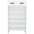 Keep your shoes organised and create a tidy environment with this elegant shoe cabinet! Durable material: The engineered wood is of exceptional quality with smooth surface and also features strength, stability and resistance to moisture.Ample storage space: This shoe cupboard has 1 drawer and 5 open compartments, providing ample storage space for keeping all types of shoes.Stable cabinet top: The top of this shoe stand is suitable for placing your favourite decorative items such as vases, potted plants, etc.Practical design: The iron feet add an industrial style to your interior while ensuring stability. The faux leather drawer handles which are soft and delicate protect you and your family from accidental knocks and bumps. Warning:To prevent it being overturned, this product must be used with the provided wall attachment device.