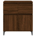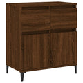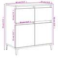 This stylish sideboard is a perfect choice for your room with its trendy and practical design. Durable material: The engineered wood is of exceptional quality with a smooth surface and also features strength, stability, and resistance to moisture.Metal feet: The metal feet offer sturdiness and stability for the side board.Ample storage space: This cabinet has 2 drawers and 2 compartments with doors to keep your essentials well organised and within reach.Wide applications: You can use this side cabinet as a bathroom cabinet or kitchen cupboard, or just as an elegant storage cabinet in bedrooms, powder rooms, entryways, corridors and offices, dining rooms, and other living areas. Good to know:To make assembly as easy as possible, each product is delivered with a manual. Warning:To prevent it being overturned, this product must be used with the provided wall attachment device.