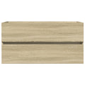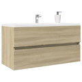 This sink cabinet, featuring spacious storage space, is a great addition to your bathroom, giving it a tidy and striking appearance! Long-lasting material: The engineered wood is of exceptional quality with a smooth surface and also features strength, stability and resistance to moisture.Ample storage space: The cabinet with drawers offers ample storage space for keeping your various daily essentials well organised and within easy reach.Tidy appearance: The clean lines and sleek design blend into your bathroom perfectly.Practical design: The sink is essential equipment in the bathroom, so the top of the cabinet is designed as the ideal location for placing the sink.Space saving: The cabinet can be wall-mounted to add extra storage space. That way, you can maximise your floor space and keep the area clean. Good to know:Screws and plugs for inside the wall are not included. We advise you to find and use screws and plugs suitable specifically for your walls. If you're not sure, you can consult with a professional. Please read and follow each step of the instructions.