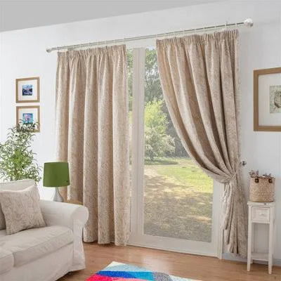 Chenille Jacquard Lined Pencil Pleat Taped Top Curtains Cream