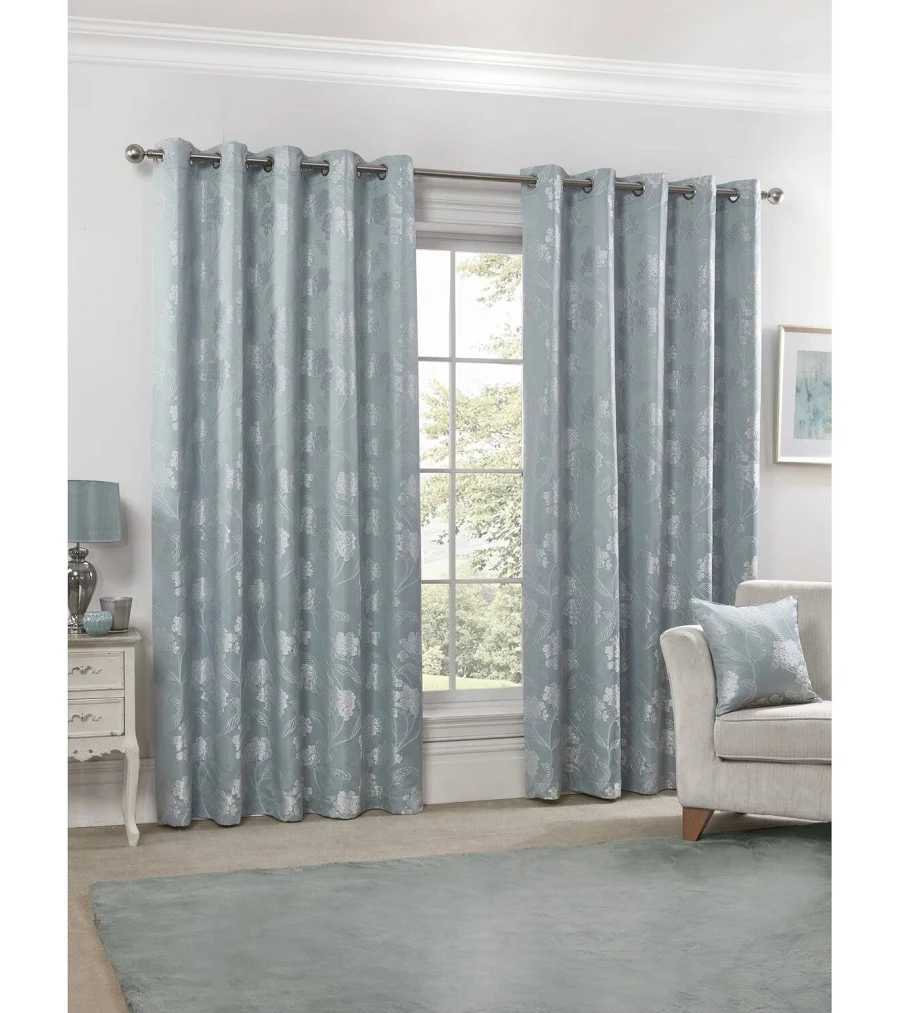 Love Decore English Garden Lined Eyelet Jacquard Curtains - Duck Egg Blue / 183cm / 168cm