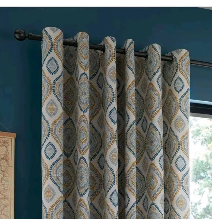 Pineapple Elephant Ziri Fully Lined 46x54 Eyelet Curtains Teal