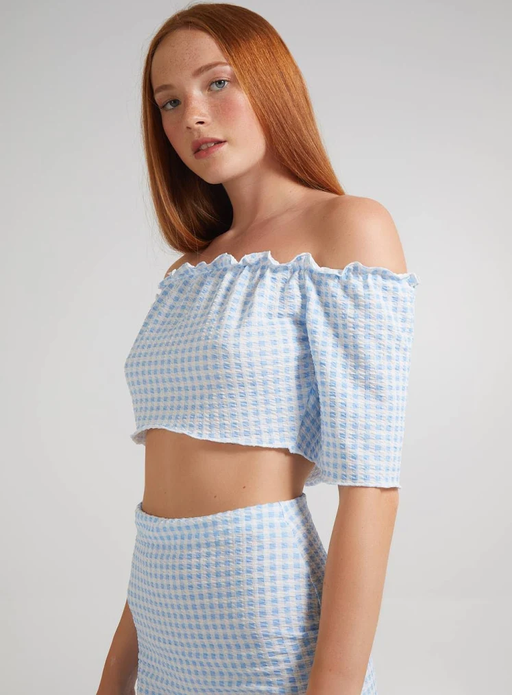 Love Decore Pink Vanilla Women's Frill Detail Gingham Bardot Top