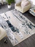 * The Glacier color palette of the rug adds a touch of serenity and calmness to any room, with its soothing shades of blue and white.