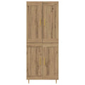 This highboard is a versatile addition to any dining room or living space, embodying a modern aesthetic with its clean lines and minimalist design. Created for both form and function, it combines visual appeal with practicality, offering a practical storage solution while enhancing your room ambiance. Its rectangular shape ensures it fits seamlessly alongside other furniture, providing an orderly yet stylish look. Enhanced by its gold-toned hardware, the design exudes a touch of elegance suitable for contemporary tastes. Quality Engineered Wood Constructed from durable engineered wood, this piece boasts reliability and strength, ensuring a long-lasting addition to your home. Its composition makes it robust against daily wear and tear, promising continual aesthetic appeal across seasonal changes. This material is chosen for its stability and resistance to warping, making it ideal for indoor use. Functional Shelf Design The board shelves, crafted from engineered materials, provide straightforward and stable solutions for storing various dining essentials. Their attention to practicality aids in organizing items efficiently, eliminating clutter while adding to the uniform look of the interior. Gold Accents &Bar Handles Adorned with gold accents, the highboard features metal bar handles, offering a sleek grip and adding a modern contrast against the wooden structure. This combination elevates the overall appeal, transforming functional components into stylish highlights. Hinged Door Versatility Featuring hinged doors made of engineered wood, this storage unit allows easy access to contents while ensuring they remain protected from dust. This design optimizes space efficiency, keeping the unit's look smooth and uninterrupted when closed. Easy Assembly Adjust seamlessly with clear assembly instructions requiring two people and a screwdriver. No special tools are needed, making integration into your living space straightforward and convenient.