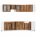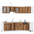 This 11-piece kitchen cabinet set, with its elegant design, optimises your kitchen space and provides ample storage space for your personal belongings! Stable and durable material: Engineered wood is a durable and stable material with a smooth surface that is resistant to moisture, warping, and splitting, making it a reliable choice for a variety of projects.Ample storage space: The kitchen cabinet set has many compartments, and offers sufficient space to store bowls, plates, pots, and other kitchen appliances.Adjustable feet: The bottom cabinets feature adjustable feet that can be adjusted in height to suit your kitchen layout.Easy to maintain: Thanks to its smooth surface, these kitchen cabinets are easy to clean with a damp cloth and require less maintenance. Warning:To prevent it from tipping over, this product must be used with the provided wall attachment device. Good to know:Screw(s) and plug(s) for inside the wall are not included. Seek and use screw(s) and plug(s) suitable for your walls. If you are uncertain, seek professional advice. Read and follow each step of the instruction carefully.The worktop, sink and faucet are not included in the delivery.