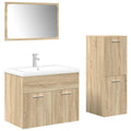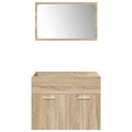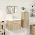 This handy bathroom furniture set, featuring spacious storage space, is an excellent addition to your bathroom, giving it a tidy and striking appearance! Long-lasting material: The engineered wood is of exceptional quality with a smooth surface and also features strength, stability and resistance to moisture.Durable material: The bathroom sink, made of ceramic, has a durable surface that resists impacts, stains, and scratches, ensuring its long-lasting shine.Ample storage space: The bathroom cabinet offers ample storage space to easily accommodate your essential toiletries and bath items such as soaps, shampoo, toothpaste, etc.Wall-mounted function: The bathroom furniture can be wall-mounted to add extra storage space. That way, you can maximise your floor space and keep the area clean.Clear image: The glass mirror face provides a fine and non-distorted reflection, so it is suitable for making up, shaving or checking the suit before going out. Good to know:Screws and plugs for inside the wall are not included. We advise you to find and use screws and plugs suitable specifically for your walls. If you're not sure, you can consult with a professional. Please read and follow each step of the instructions.