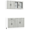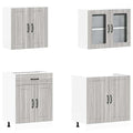 This 4-piece kitchen cabinet set, with its elegant design, optimises your kitchen space and provides ample storage space for your personal belongings! Stable and durable material: Engineered wood is a durable and stable material with a smooth surface that is resistant to moisture, warping, and splitting, making it a reliable choice for a variety of projects.Ample storage space: The kitchen cabinet set has many compartments, and offers sufficient space to store bowls, plates, pots, and other kitchen appliances.Adjustable feet: The bottom cabinets feature adjustable feet that can be adjusted in height to suit your kitchen layout.Easy to maintain: Thanks to its smooth surface, these kitchen cabinets are easy to clean with a damp cloth and require less maintenance. Warning:To prevent it from tipping over, this product must be used with the provided wall attachment device. Good to know:Screw(s) and plug(s) for inside the wall are not included. Seek and use screw(s) and plug(s) suitable for your walls. If you are uncertain, seek professional advice. Read and follow each step of the instruction carefully.The worktop, sink and faucet are not included in the delivery.