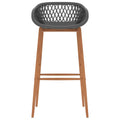 Featuring a modern and contemporary design, our bar set is perfect to go with any modern homes, gardens, bars, pubs or restaurants. Its clean and contemporary design will complement any interior decor. The tabletop is made of MDF which is easy to clean. The powder-coated metal frame adds to bar table's stability and sturdiness. The bar stools have an ergonomically designed seat with integrated low backrest in a mesh look. Made of robust PP and supported by strong metal legs with heat transfer print in wood look, these counter chairs are sturdy and durable.