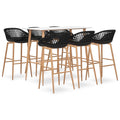 Featuring a modern and contemporary design, our bar set is perfect to go with any modern homes, gardens, bars, pubs or restaurants. Its clean and contemporary design will complement any interior decor. Our counter table features a durable MDF tabletop and strong metal legs with wood look. The bar stools have an ergonomically designed seat with integrated low backrest in a mesh look. Made of robust PP and supported by strong metal legs with heat transfer print in wood look, these counter chairs are sturdy and durable.