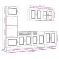 This 7-piece kitchen cabinet set, with its elegant design, optimises your kitchen space and provides ample storage space for your personal belongings! Stable and durable material: Engineered wood is a durable and stable material with a smooth surface that is resistant to moisture, warping, and splitting, making it a reliable choice for a variety of projects.Ample storage space: The kitchen cabinet set has many compartments, and offers sufficient space to store bowls, plates, pots, and other kitchen appliances.Adjustable feet: The bottom cabinets feature adjustable feet that can be adjusted in height to suit your kitchen layout.Easy to maintain: Thanks to its smooth surface, these kitchen cabinets are easy to clean with a damp cloth and require less maintenance. Warning:To prevent it from tipping over, this product must be used with the provided wall attachment device. Good to know:Screw(s) and plug(s) for inside the wall are not included. Seek and use screw(s) and plug(s) suitable for your walls. If you are uncertain, seek professional advice. Read and follow each step of the instruction carefully.The worktop, sink and faucet are not included in the delivery.