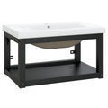 This wall-mounted bathroom washbasin frame with a bulid-in basin is a perfect match for your bathroom or washroom with a clean, tidy appearance. The wash stand is made of powder-coated iron, making it stable and durable. This washbasin frame gives easy access to towels and baskets and creates a more ample space than closed storage. Made of ceramic, the basin can not only serve as a vessel for daily use but also as an adornment in your living space. Thanks to its trendsetting and contemporary design, this washbasin will definitely suit any decor. An overflow is also equipped to flow water out when it gets too full. Its glazed surface brings itself a modern yet elegant design. Additionally, the washbasin frame and basin are easy to clean with a damp cloth. Please note: The tap and the drain are not included in the delivery.