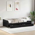 The Modern Bed Frame combines timeless rustic charm with durable functionality, making it a perfect fit for any bedroom seeking a natural and rugged aesthetic. Its rectangular shape and solid pine wood construction offer a sense of warmth and sturdiness, ideal for both adults and children. Whether you aim for a cozy retreat or a classic backdrop in your home, this bed frame promises to enhance your space with its understated elegance and functional design. Robust Pine Construction Solid Pine Wood frame provides reliable durability and a natural look that complements a variety of bedroom styles. Its solid build promises long-term use and resistance to everyday wear, while maintaining the rustic charm and warmth that's synonymous with natural wood furniture. Functional Storage Options Features traditional pull drawers made of solid pine wood, offering convenient storage space for your bedroom essentials. The drawers slide out easily thanks to their well-designed handles, providing discreet and accessible storage without impacting the bed’s aesthetic. Easy Assembly Process Requires assembly by two people using a screwdriver. The straightforward assembly ensures you'll have your bed frame set up in no time, without the need for extensive expertise, making it a practical choice for any homeowner. Rustic Aesthetic Embodies the beauty of natural, rugged elements, making it a suitable choice for rustic and modern alike. The wood’s distinct grains and patterns showcase its natural origins, bringing warmth and character to your sleeping space. Low Maintenance Simply wipe with a damp cloth to keep it looking its best. This easy care promotes longevity and helps reduce the upkeep needed, allowing you to enjoy the bed frame’s natural aesthetics without extensive maintenance.