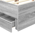 This Modern Bed Frame is an ideal addition to any bedroom, offering both functionality and aesthetic appeal. Its clean lines and minimalist design make it a versatile piece that can complement a variety of interior styles. Constructed primarily from engineered wood, this bed frame promises sturdiness and stability, ensuring a comfortable and restful sleep every night. Imagine this sleek bed as the centerpiece of your bedroom, its understated elegance creating a serene environment conducive to relaxation and sleep. Perfect for those who appreciate modern furniture with a touch of sophistication, this bed frame further enhances the comfort of your bedroom with its solid foundation and thoughtful design. Durable Engineered Wood: The frame is crafted from engineered wood known for its excellent durability and abrasion resistance. This material choice ensures that the bed frame remains robust, offering long-lasting reliability for all your sleeping needs. Fixed Slatted Frame System: Featuring a non-flexible slatted frame, this bed provides dependable mattress support. This design ensures that your mattress stays in optimal condition longer, providing superior comfort with every night's rest. Ingenious Hidden Storage: Discreet drawer compartments are seamlessly integrated, offering a savvy storage solution for personal belongings. These hidden spaces are perfect for maintaining a clutter-free bedroom while keeping essentials within easy reach. Streamlined Modern Aesthetic: With its clean, modern design, featuring square legs and a sleek headboard, this bed frame is a stylish addition to any bedroom. It embodies simplicity and functionality without excessive ornamentation. Easy Maintenance: The bed frame requires minimal upkeep. A simple wipe with a damp cloth keeps it clean, making it an excellent choice for busy lifestyles where hassle-free maintenance is a priority.