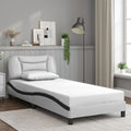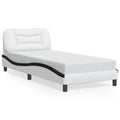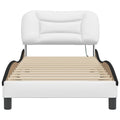 Get a better restful night's sleep from this bed frame with LED lights! It makes a welcoming addition to any bedroom. Durable faux leather: Premium faux leather is a highly durable material. It is resistant to stain, making it easy to clean with a damp cloth. The smooth surface also gives a luxurious look and the beauty of real leather.Plywood slats: The plywood slats provide good weight distribution, ensuring that the mattress stays in place with every twist and turn of your body during sleep.Excellent support: The bed header provides you with excellent back support while you're sitting up in bed to read or watch TV.Colourful LED strip: Bring playfulness into darkness with colourful LED lights! The hook and loop fasteners on the back of the headboard cushion can be used to secure the LED lights.Waved side design: The waved look of the bed frame is stylish and sophisticated, adding a modern and elegant touch to your decor, making it the focal point of your bedroom. Good to know:A mattress is not included with this bed. We do offer a various selection of mattresses. You can check our shop for a matching mattress.The product has a USB connector that requires a certified 5V USB power source (not included).