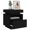 Featuring a trendy yet practical design, these bedside cabinets with LED lights will definitely become a focal point of your room. Durable material: The engineered wood is of exceptional quality with smooth surface and also features strength, stability and resistance to moisture.RGB LED lights: These bed side cabinets feature RGB LED lights, which have different menus to change the colour of lights and let the colour adjust automatically.Ample storage space: These bedside tables offer handy storage space for keeping your magazines, remote controls and your small items well organised and within reach.Displaying function: The sturdy tops of these media cabinets are ideal for displaying decorative objects, photo frames, or potted plants. Good to know:The product has a USB connector, but the certified 5V USB power source is not included.