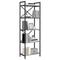 This Industrial Bookshelf enhances any space with its robust build and stylish look, combining aesthetic appeal with functional utility. Made to hold books, decor, and more, it provides ample storage in any room such as a home office or living room. Its bold silhouette is crafted from sturdy materials, with a contemporary industrial design drawing inspiration from urban lofts. Perfect for those seeking a functional yet stylish solution, it seamlessly complements a variety of interior styles. Materials: Featuring engineered wood, renowned for its abrasion resistance, this bookshelf offers a sophisticated appearance and excellent durability over time. Engineered wood presents a smooth surface ready for your most treasured items, promising longevity and strength to support your storage needs. Included Components: The bookshelf is designed with board shelves constructed for flexibility and stability. Connected by a robust steel frame, its square legs ensure the bookshelf remains steady, even on uneven surfaces. The freestanding floor design adds versatility, making it easy to move or reposition as required. Features /Function /Design: Boasting easy maintenance and a robust frame, this bookshelf delivers both practicality and reliability. As a practical solution, it allows for a seamless organization of books and decor, making it an indispensable companion for those who value both style and orderliness in their space. Recommended Uses: Ideal for the home office, study, or living room, the bookshelf serves as a reliable storage unit for books, decorative items, and various knick-knacks. Its industrial flair complements various styles, fitting elegantly into contemporary and traditional room settings alike. Care &Maintenance: Keep your bookshelf pristine by wiping it with a dry cloth, avoiding harsh chemicals and abrasives. These simple care steps ensure that the bookshelf remains a lasting fixture, maintaining its aesthetic appeal for years to come.