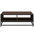 Relax and enjoy entertaining your family and friends around this coffee table! Stable and long-lasting frame: The metal frame of the table enhances your interior with an industrial style and provides exceptional durability, stability and resistance to corrosion.Stable and durable material: Engineered wood is a durable and stable material with a smooth surface that is resistant to moisture, warping, and splitting, making it a reliable choice for a variety of projects.Ample storage space: This side table provides ample storage space for keeping your magazines, books, DVDs, remote control and other small items well-organised and within reach.Stable and sturdy tabletop: The sturdy tabletop is ideal for placing your drinks or any other necessities you need close at hand.