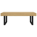 Add a touch of elegance to your current home decor with this coffee table. Sturdy frame: The strong iron legs ensure that the couch table remains sturdy and stable.Stable tabletop: The tabletop, made of MDF, is ideal for placing snacks, drinks, vases, fruit bowls, etc.Great addition: The table with clean lines makes a great addition to your living space.