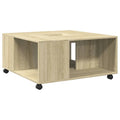 Combining functionality and beauty, this coffee table will be the focal point of your room.Stable and durable material: Engineered wood is a durable and stable material with a smooth surface that is resistant to moisture, warping, and splitting, making it a reliable choice for a variety of projects.Ample storage space: The coffee table with an open design has four compartments and offers ample storage space to keep your essentials well organised and within reach.Easy to move: This tea table, with the included four swivel wheels, can be easily moved to the desired place. The two wheels are lockable, which keeps the cabinet in position and adds stability.Stable and sturdy tabletop: The sturdy tabletop is ideal for placing your drinks or any other necessities you need close at hand.Easy to maintain: Thanks to its smooth surface, the side table is easy to clean with a cloth and requires less maintenance.