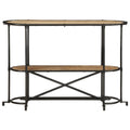 This console table has a unique design and will complement your home decor. Robust and stable material: Solid mango wood, a robust tropical hardwood, is highly favoured for furniture making for its exceptional durability and strength. Its beautiful wood grains make every piece of furniture slightly different from the next.Stable and long-lasting frame: The iron frame of the table enhances your interior with an industrial style and provides exceptional durability and stability.Sturdy tabletop: The sturdy tabletop of the hallway table is perfect for placing your framed photos, potted plants, and other decorative items.Ample storage space: The side table with an open design has two shelves and offers ample storage space to keep your essentials well organised and within reach. Good to know:Each item is unique with variations in colours and grains. The delivery is random, ensuring the exclusivity and individuality of your product.